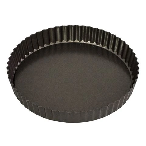 A premium fluted deep round tin ideal for making quiches, tarts and flans. Made from heavy duty carbon steel, it features a double non-stick coating and loose base for easy release.