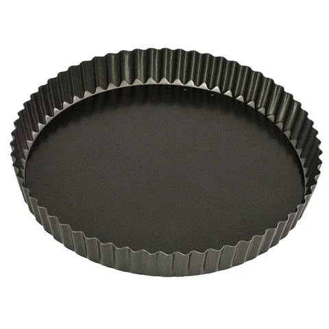 A premium fluted round tin ideal for making quiches, tarts and flans. Made from heavy duty carbon steel, it features a double non-stick coating and loose base for easy release.