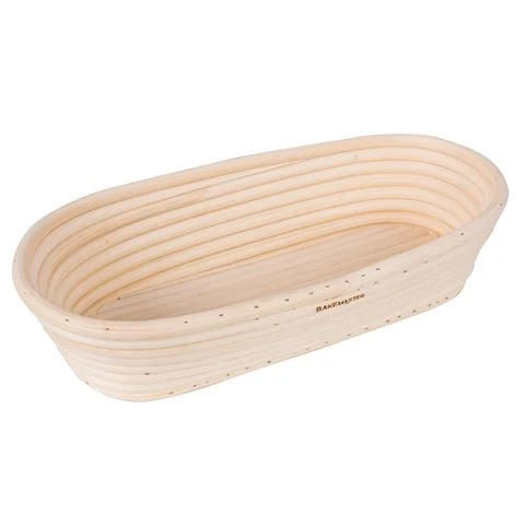 The Oval Loaf Proving Basket by Bakemaster is perfect for rising dough and helps maintain its shape before baking. It allows the dough to develop flavour and texture while creating a spiral imprint which will leave you with a beautiful artisan style loaf. Perfect for a variety of breads including white, rye and sourdough.