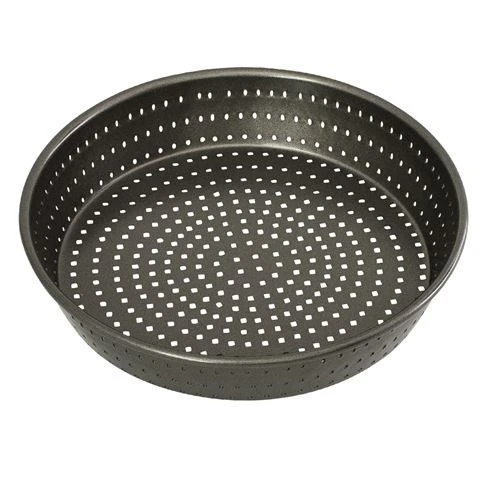 This heavy duty fluted Deep Pie Pan is ideal for baking pies, quiches and cakes. It has perforated holes for better air circulation and a crisper crust.
