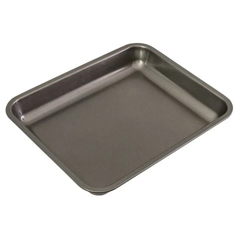A premium roasting pan is perfect for roasting chicken, meat and a variety of vegetables. Made from heavy duty carbon steel, it features a double non-stick coating and sloped sides for easy removal.