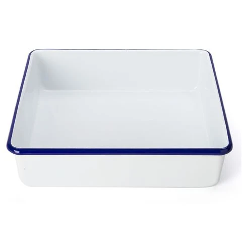 White & Blue Enamel Square Cake Pan features: