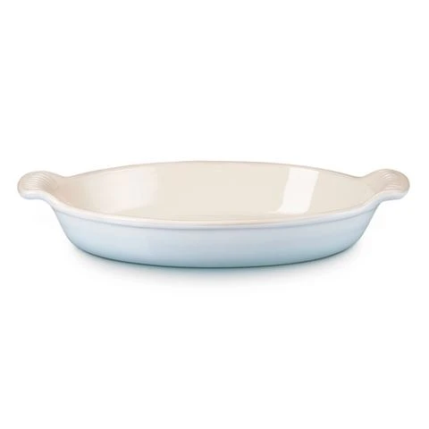 Discover your new cooking essential. This stoneware oval dish belongs to Le Creuset’s Heritage Series – a classic collection inspired by the original French designs presented in 1931. It’s ideal for marinating, gratinee, roasting, and serving. The oval shape is enhanced by the curved handles